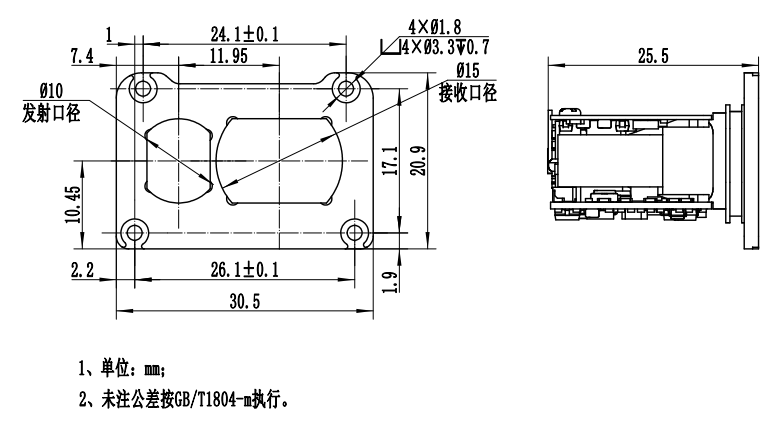 1. 轻量小型化:重量≤14.5g,体积仅25.5×30.5×20.9mm,适合空间受限应用。